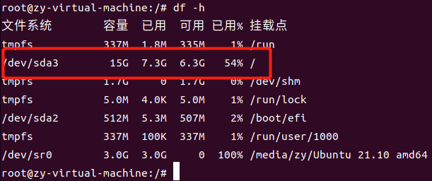上图可见,我根目录有15G的空间,挂载的磁盘是/dev/sda3的磁盘