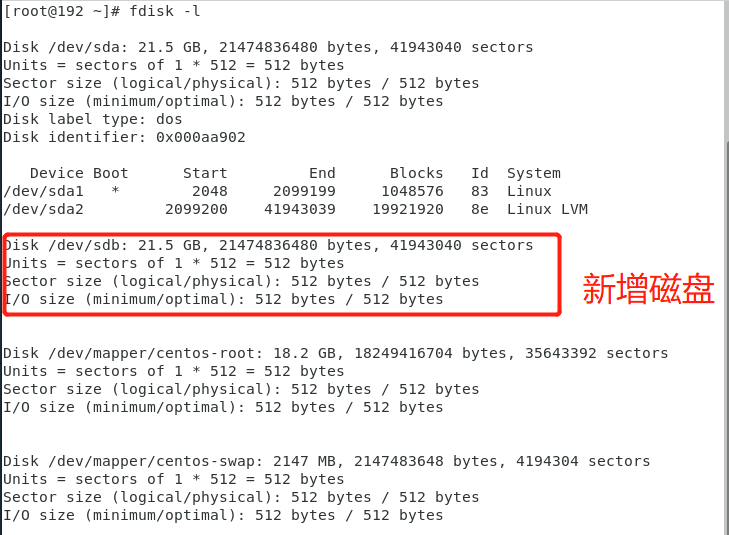 $ df -h2. 执行fdisk -l命令查看磁盘分区状态,如下图