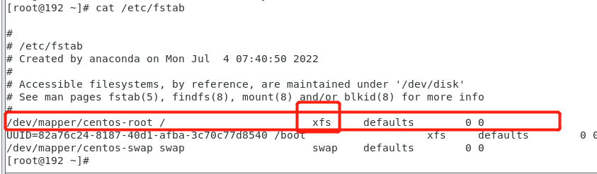 确认文件系统是否为xfs,如果为xfs分区类型,用xfs_growfs