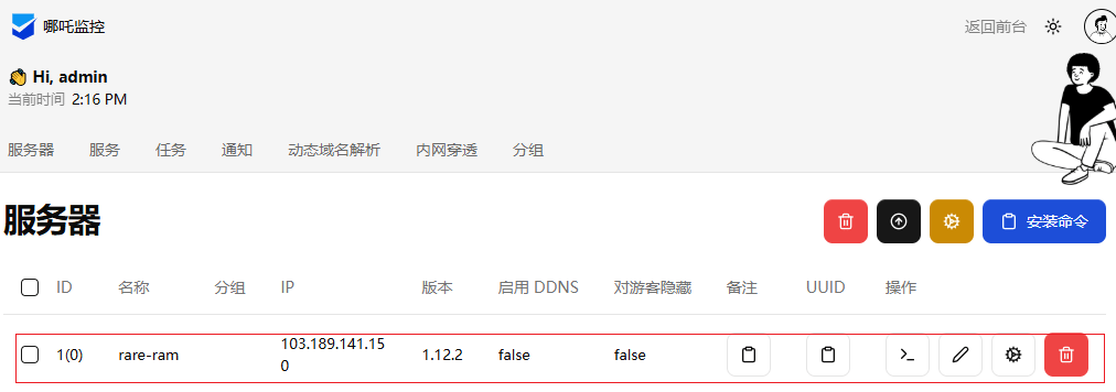 请指定安装命令中预设的 nezha-agent 连接地址 (例如 example.com:443)103.189.141.150:7777 #配置客户端访问地址,有域名这样配置:zzyyoo.top:7777