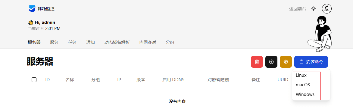 curl -L https://gitee.com/naibahq/scripts/raw/main/install.sh -o nezha.sh && chmod +x nezha.sh && sudo CN=true ./nezha.sh脚本提供了docker安装和独立安装两种种方式